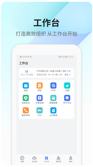 - 提供OA功能窗口,实现团队线上办公