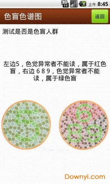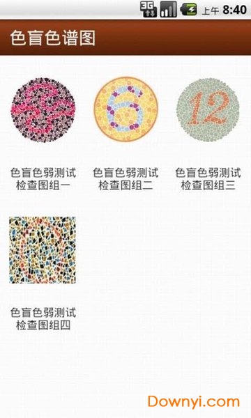 本软件通过4组医学模板,可以很准确的判定色盲的类型。色盲是一种先天性色觉障碍疾病。色觉障碍有多种类型,最常见的是红绿色盲。根据三原色学说,可见光谱内任何颜色都可由红、绿、蓝三色组成。如能辨认三原色都为正常人,三种原色均不能辨认都称全色盲。色盲、色弱是一种先天性色觉障碍疾病,通过软件可以很准确的判定色盲的类型,让您及早了解自己的病症并且自己治疗调理。该应用采用国际通用的色觉测试标准,测试结果具有较高的参考价值,适合各年龄段用户进行初步色觉筛查。