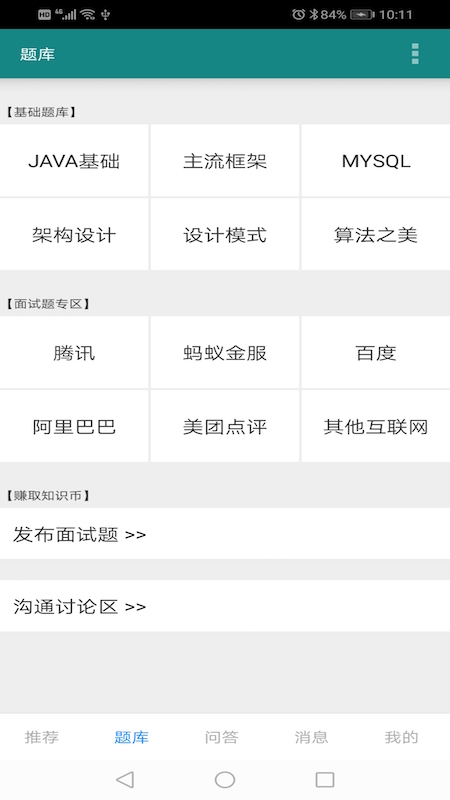 【题库】由基础题库+面试题专区共同组成。没事刷刷基础题库,有事找找面试题,让面试成为快乐的一件事。题库内容持续更新,包含数千道精选题目,每道题都配有详细解析和知识点说明。系统会根据用户答题情况智能推荐薄弱环节的练习题,实现精准提升。