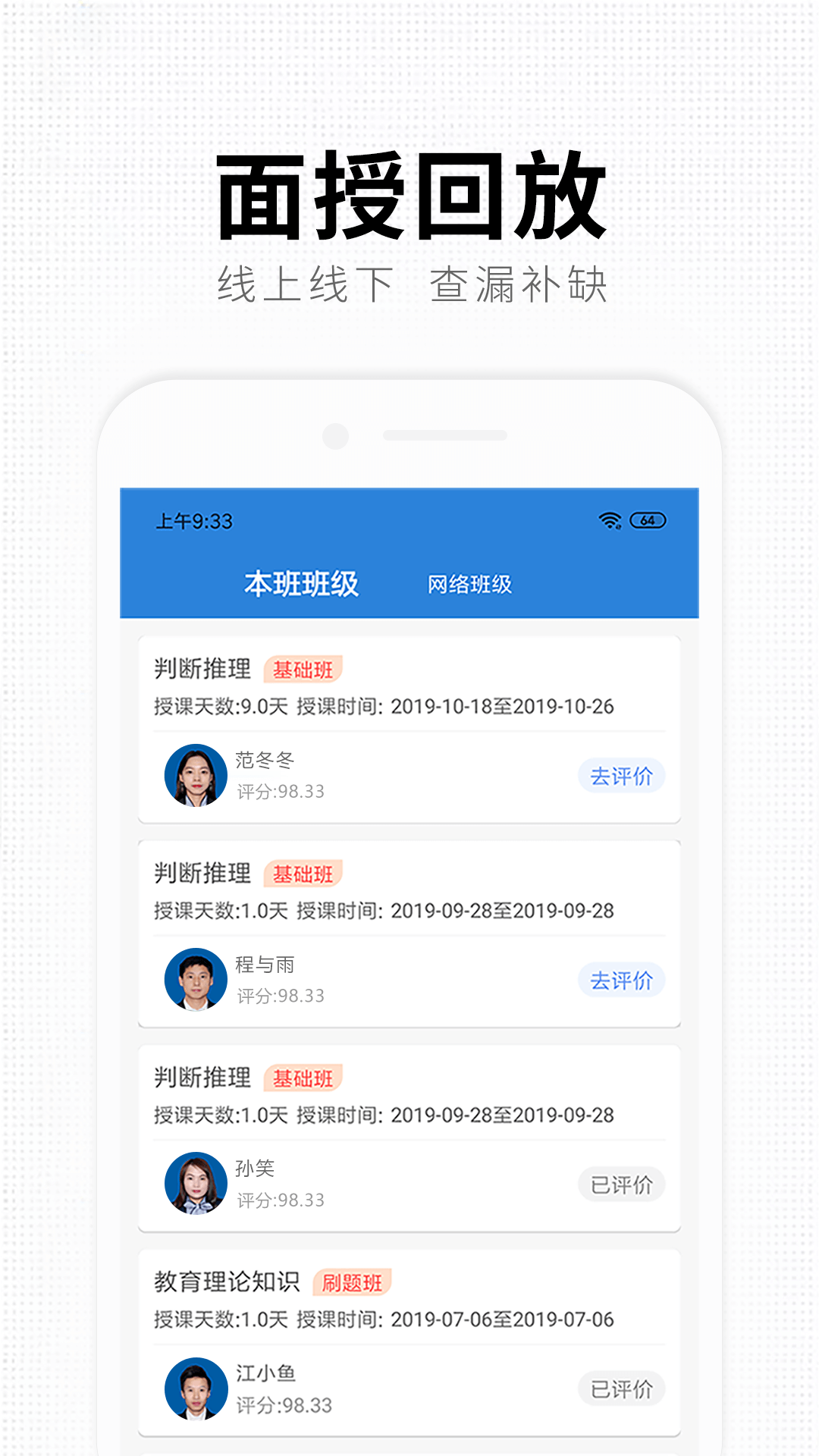 面授课程回放功能,实现线上线下无缝衔接,随时查漏补缺;