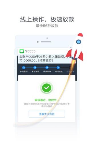 【放款迅速】采用智能风控系统,最快56秒即可完成放款流程,让您在紧急时刻第一时间获得所需资金。