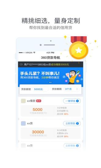 安卓apk,360贷款导航是一款专为急需资金周转的用户设计的全新贷款工具应用。无论您面临临时资金短缺、突发消费需求还是短期经营周转,这款app都能为您提供高效便捷的贷款解决方案。通过智能匹配多家正规金融机构的贷款产品,360贷款导航让您足不出户就能获得最适合的借款方案。现在就来下载体验,让专业的贷款服务帮您解决燃眉之急!