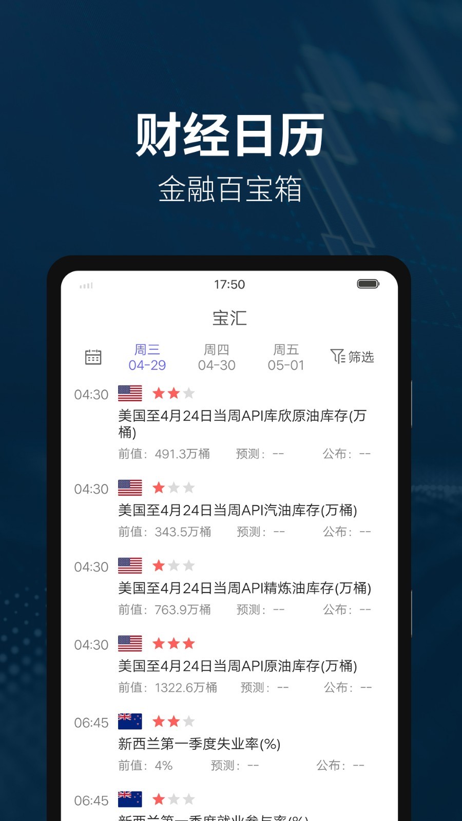 智能整理全球重要财经事件时间表,支持自定义提醒设置,重大政策发布和重要经济数据公布前及时预警;
