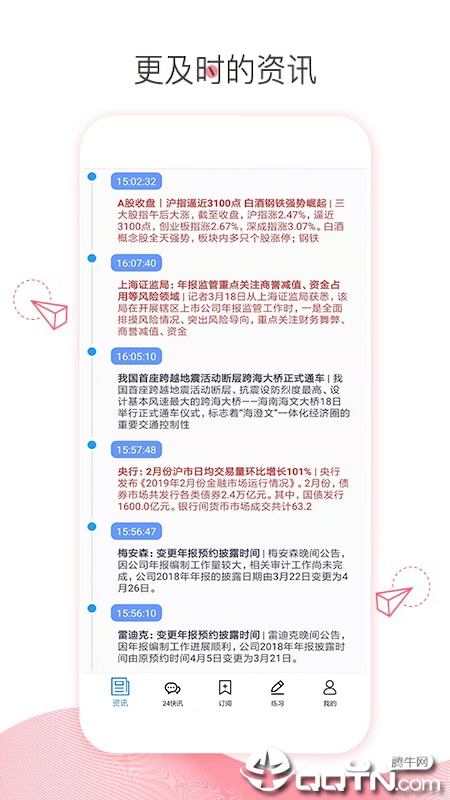 更及时的资讯:建立完善的新闻采集网络,确保重大财经新闻第一时间推送,让用户抢占市场先机。