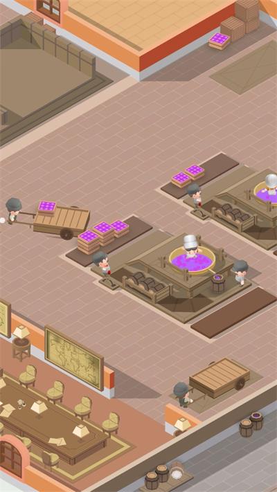 进入游戏后,玩家首先需要建立自己的葡萄种植基地,通过点击屏幕选择合适的地块进行葡萄种植。在葡萄成熟后,玩家可以雇佣专业的采摘工人进行果实采集工作。完成基础建设后,点击游戏界面上的"锤子"图标可以进入工厂建设模式,搭建果汁加工生产线。随着业务扩展,玩家还需要组建专业的运输团队,确保原材料和成品的高效流转。通过点击工作台,玩家可以对现有设备进行升级改造,研发新的加工技术,从而生产出更高品质的葡萄果汁产品。游戏还提供了丰富的员工管理系统,玩家需要合理安排不同岗位的人员配置,确保整个生产流程顺畅运行。