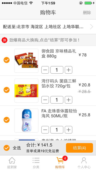 【特价商品】每日精选超值特惠商品,涵盖生鲜、日用品等多个品类,让您享受实实在在的优惠;商品品类丰富多样,包含食品饮料、日用洗护、厨卫家电等上万种商品,专业配送团队确保30分钟内快速送达;【超多分类】精心设计的商品分类系统,让您快速找到所需商品,支持按品牌、用途等多维度筛选;【快捷下单】智能购物车系统支持批量操作,一键下单流程简单快捷,支持多种支付方式;【个人中心】完善的订单管理系统,实时追踪配送进度,历史订单一键复购,会员积分可兑换优惠。