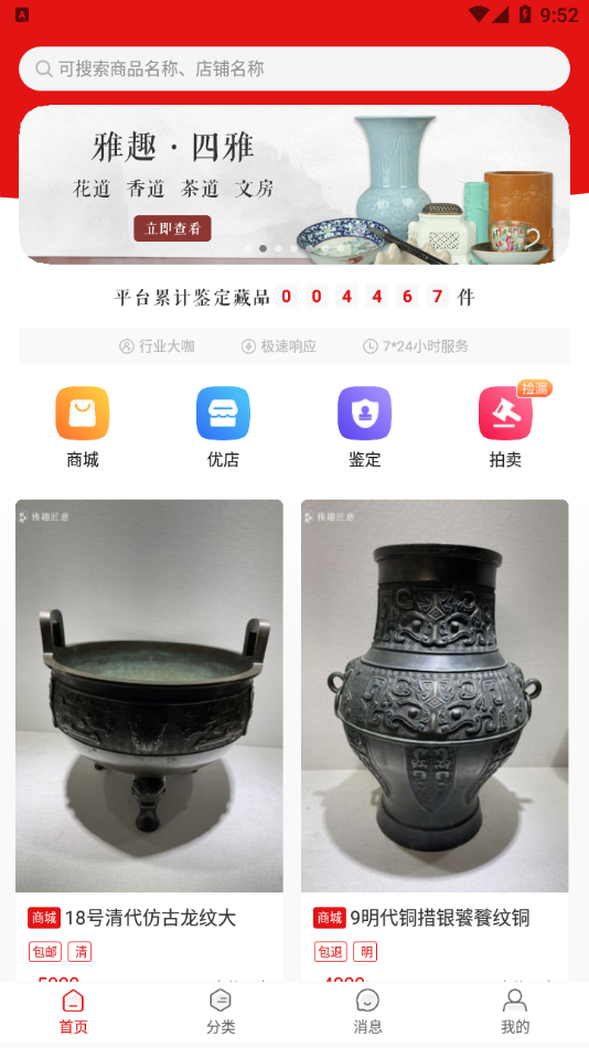 【商城】打造艺术品文化交流平台,通过图文、视频等形式讲述艺术品背后的历史故事,让艺术收藏更具文化价值。定期举办主题展览,让用户足不出户就能欣赏各类艺术精品。