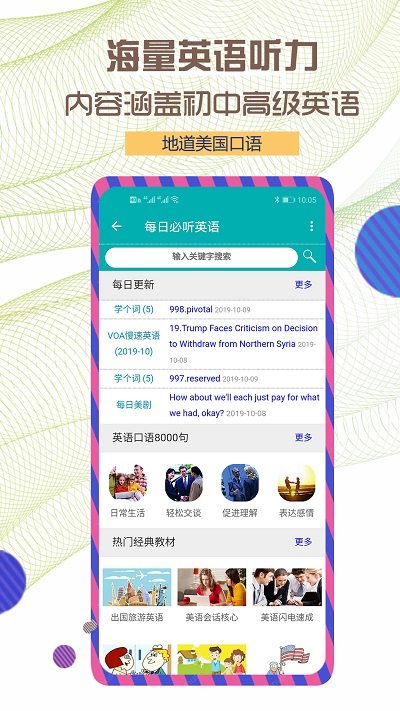 每日必听英语app是一款专为英语学习者打造的实用工具,它通过精心筛选各类日常表达短句,帮助用户轻松掌握英语交流技巧。这款应用涵盖的内容极其丰富,包括日常生活对话、情感表达、节日祝福、商务信函、旅行用语、谚语和惯用语等场景,无论是出国旅游、留学深造、商务出差,还是与外国友人交流或书信往来,都能成为您得力的语言助手。