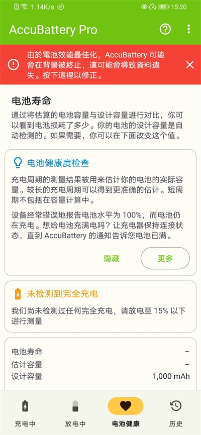 健康页面优化显示,修正了"已充电_毫安时"的显示格式问题。