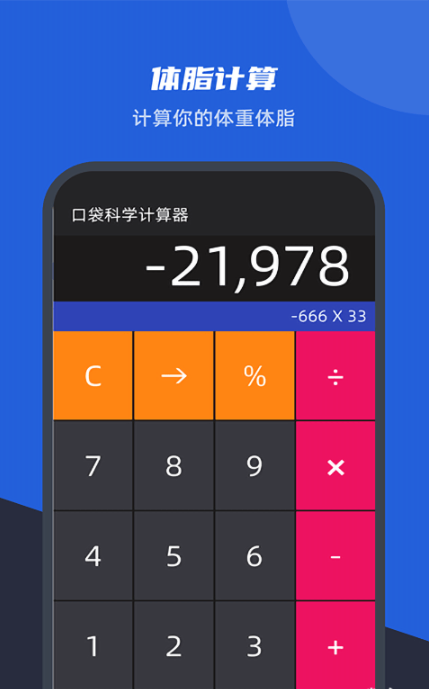 口袋计算器App是一款功能强大且实用的工具类应用,它不仅具备传统计算器的基本运算能力,还融入了多项创新功能。与手机自带计算器相比,这款App最大的特色在于其专业的体脂计算功能,用户可以根据性别进行精准测算。无论是日常购物记账、单位换算,还是专业数学运算,它都能轻松应对。简洁直观的界面设计让操作更加便捷,而强大的数据处理能力则能满足从学生到财务人员等不同用户群体的需求。