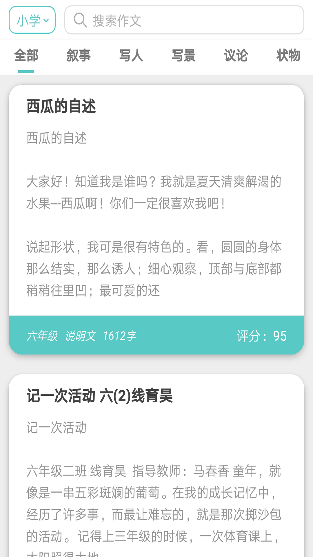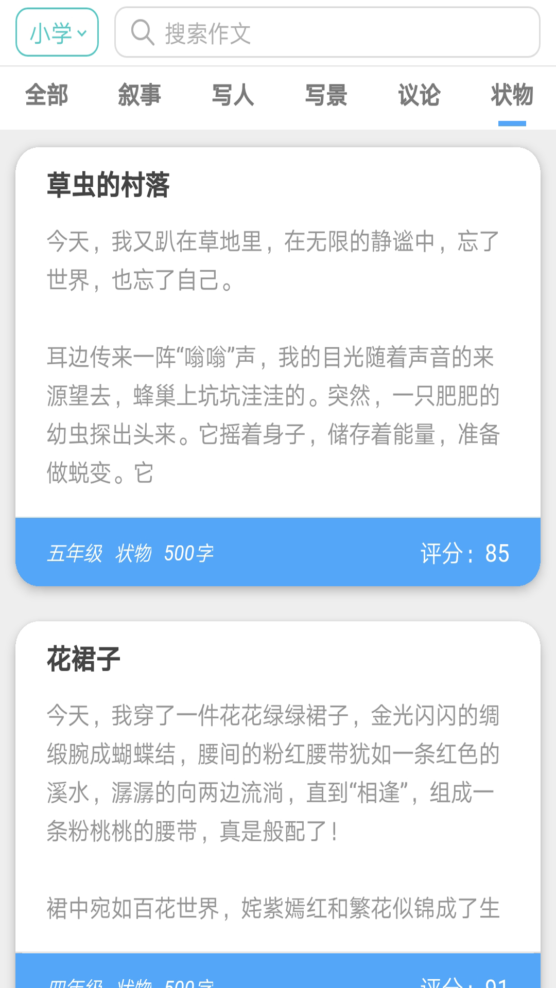 海量优质资源库,收录超过10万篇精选范文,满足不同年级学生的写作需求,帮助用户快速提升写作水平;题材丰富多样,包含写人、叙事、状物、议论、说明等各类文体,覆盖课内外所有写作场景;操作界面简洁明了,支持离线下载和个性化收藏,所有功能完全免费开放,让学习写作变得更轻松高效。