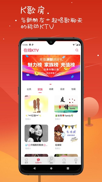 强大的家族功能,让你体现交友的无限乐趣,结识志同道合的音乐伙伴。海量伴奏曲库,新歌热歌每日不间断更新,永远走在音乐潮流前沿。练唱图+智能打分,助你迅速提升唱功,通过数据可视化了解自己的进步轨迹。