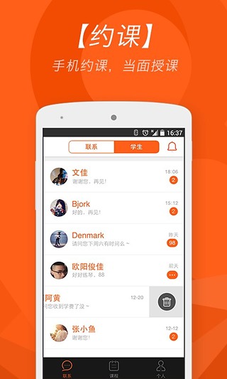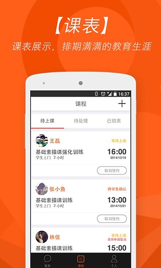 【约课】手机约课功能让教师随时随地处理学生预约,智能提醒系统确保不会错过任何教学机会。平台采用智能推荐算法,根据教师专业领域自动匹配适合的学生群体,持续为教师输送精准生源,让教师可以心无旁骛地专注于教学内容本身。