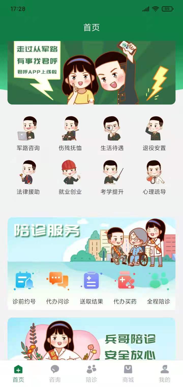 由业内人士提供专业咨询,用户通过APP或小程序,享受1V1在线答疑,解决各类生活难题。君呼动态:知名军事博主@军路,原创图文、影像、视频等干货内容,独家首发平台,为军事爱好者提供深度资讯。惠军商城:优选军工企业及知名品牌企业,以团购的价格,提供个性化电商服务,满足特殊群体的购物需求。