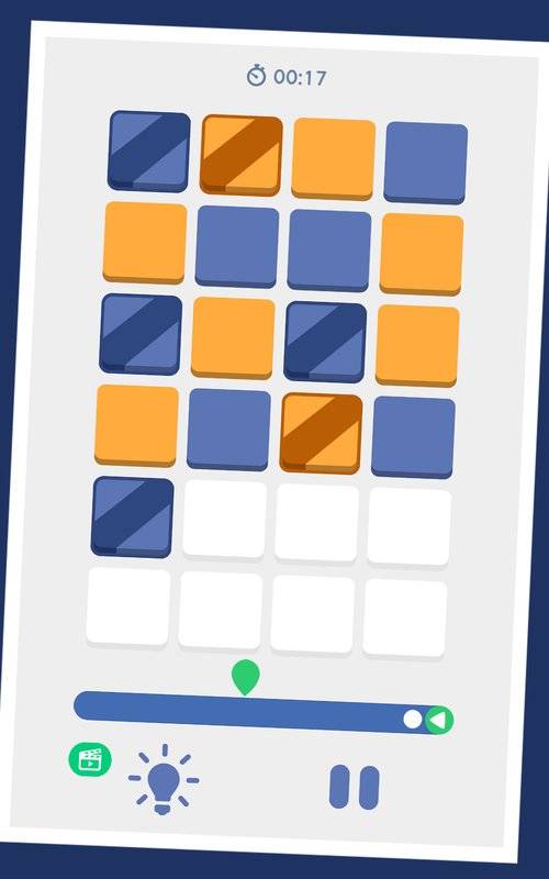 双色拼图也被称为二元拼图,其规则简单易懂但极具深度。玩家的目标是通过合理移动方块,用两种颜色完全填满整个网格。在游戏过程中,每一行和每一列都必须保持两种颜色的数量平衡,且相同颜色的方块最多只能连续出现两个。此外,为了避免游戏过于简单,所有的行和列都必须具有唯一性,这大大增加了游戏的挑战性。这种看似简单实则复杂的玩法设计,让双色拼图成为了一款既休闲又烧脑的精品游戏。