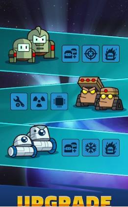 收集道具,让你的机器人军队更强大,通过装备升级打造专属战斗团队;