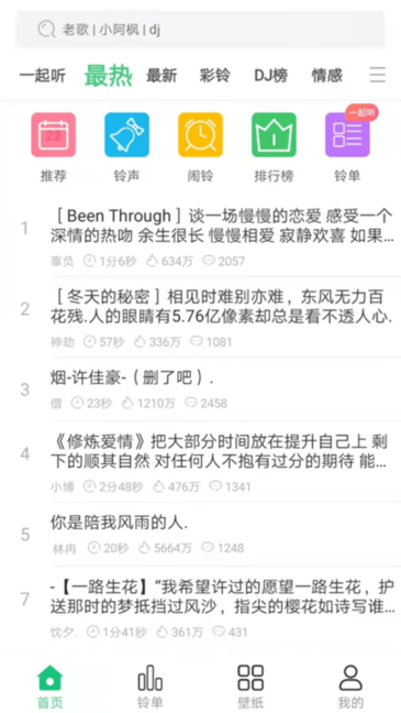整合时下最热门、最新潮的百万级铃声资源库,支持一键快速设置,让您的手机铃声时刻保持新鲜感。软件实时更新全网最火爆的铃声内容,精选分享量超高的个性彩铃,满足不同用户的个性化需求。无论是来电铃声、短信提示音还是闹钟音乐,这里都能提供最优质的选择。强大的搜索功能让您可以轻松查找完整曲库中的任何内容,想听什么就搜什么。资源分类细致全面,包含流行音乐、影视原声、动漫游戏、DJ舞曲、搞笑另类等多种类型,应有尽有。操作界面简洁直观,还提供个性化铃声创作功能,即使是新手也能快速上手,打造专属的个性铃声。