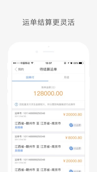 安全保障体系:实行严格的用户实名认证制度,提供运费担保服务,保障交易双方权益,让运输更安心。