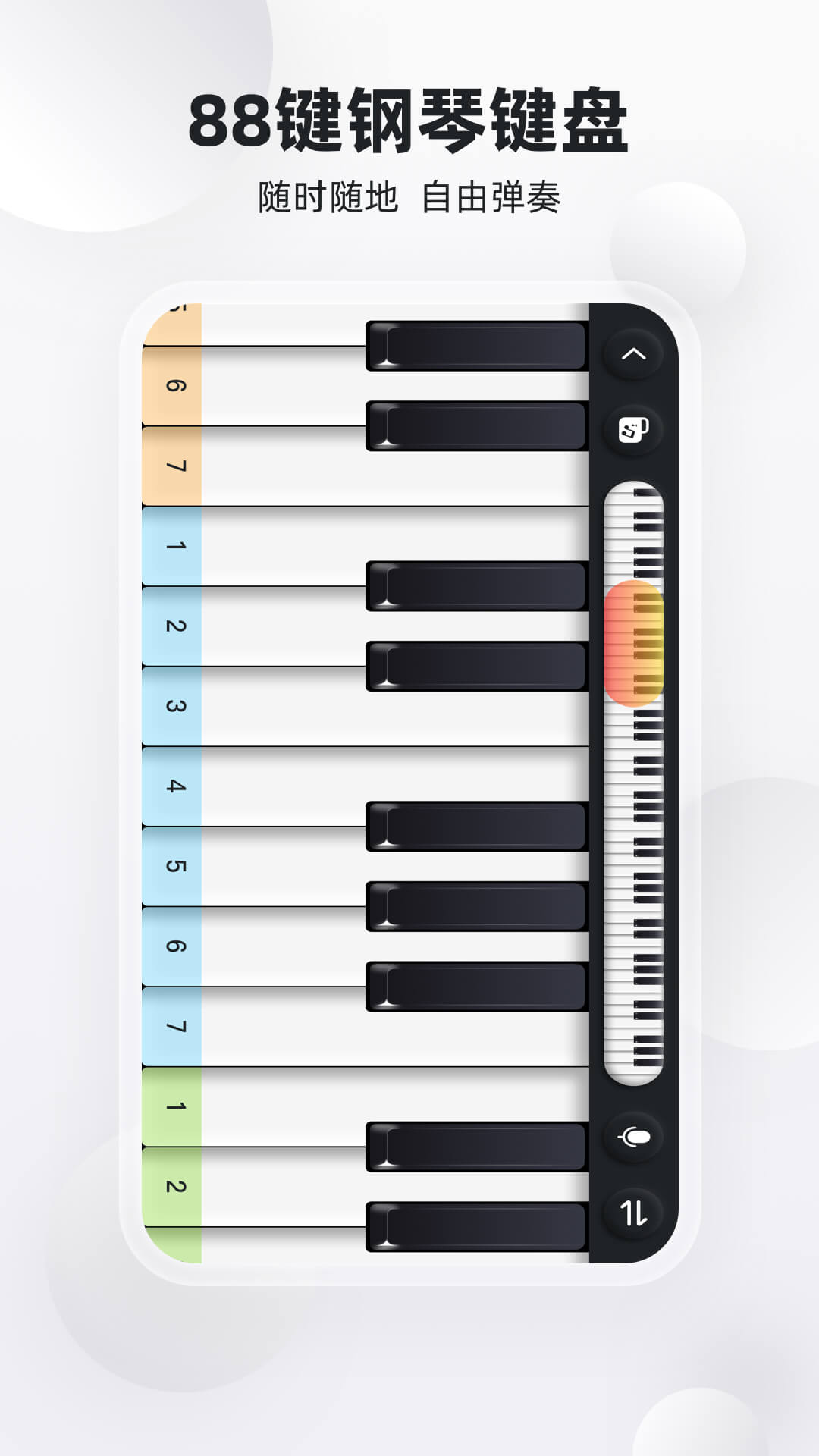 模拟钢琴功能:提供88键全尺寸钢琴键盘模拟,支持力度感应和多点触控,完美还原真实钢琴的演奏体验。