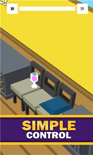 点击的形式来开启玻璃杯的跑酷挑战,躲避每一个障碍物顺利的到达终点。随着关卡推进,障碍物的种类会越来越多,从简单的桌椅到复杂的机械装置,难度逐步提升。