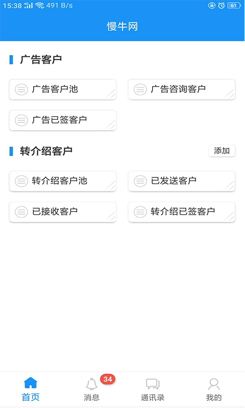 慢牛网(客户管理)app是一款专为企业内部员工打造的客户管理平台,致力于提升团队协作效率与客户服务质量。该系统通过智能化的客户信息管理、精准的数据分析和便捷的沟通工具,帮助员工轻松完成客户分类、跟进记录、销售管理等日常工作。无论是客户分布可视化、团队协作还是销售流程优化,慢牛网都能提供全方位的支持,让企业运营更加高效有序。