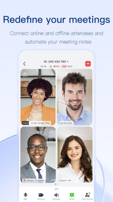 最多与350名参会人员视频通话,满足大型线上会议需求