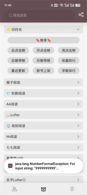 读不舍书提供三种专业设计的阅读模式:白天模式明亮清晰,夜间模式柔和护眼,护眼模式采用科学配色减轻视觉疲劳。强大的书源管理系统支持一键导入海量优质书源,确保小说更新及时、内容完整。软件承诺永久保持无广告干扰,让您完全沉浸在阅读的世界中。基于人工智能的推荐系统会分析您的阅读偏好,智能推荐可能感兴趣的新作品,帮助您发现更多精彩内容。