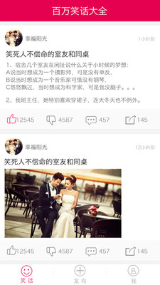 百万笑话大全是一款专为幽默爱好者打造的搞笑应用,汇集了全网最精彩的段子、笑话和神回复。无论你是想放松心情,还是寻找社交话题,这里都能满足你的需求。应用界面简洁友好,内容每日更新,保证让你笑不停。从爆笑内涵到无节操神评,各种类型应有尽有,让你成为朋友圈里的幽默达人。快来下载体验,开启你的欢乐时光吧!