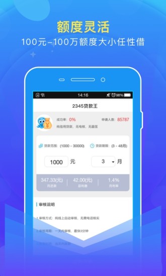 网上贷款:出差、旅游、居家必备获取现金的贷款软件,贷款2小时到帐;提供智能还款提醒功能,帮助用户合理安排资金。
