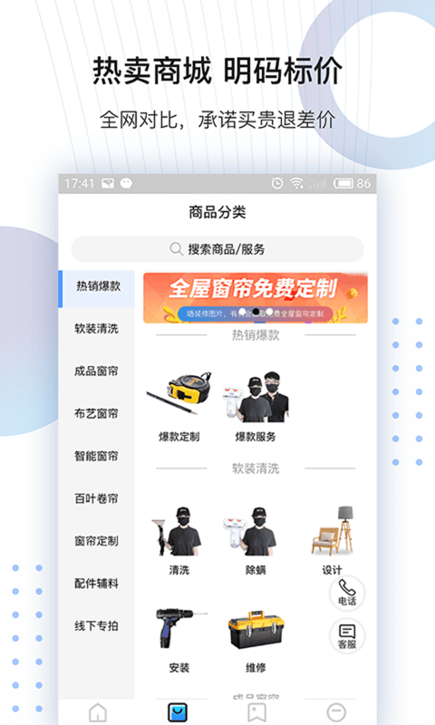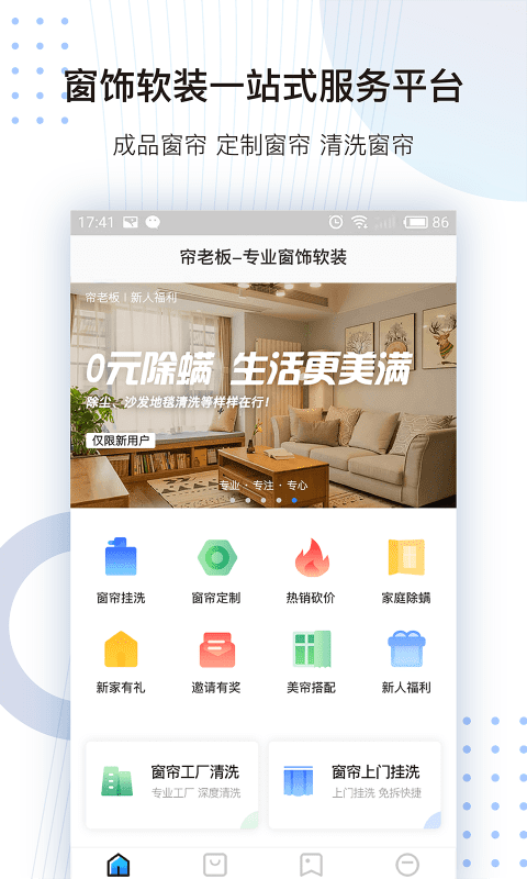 帘老板APP是您窗饰软装的一站式解决方案专家,从成品窗帘选购到高端私人定制,从专业测量安装到贴心清洗养护,我们为您提供全方位的品质服务。新用户注册即可享受1380元专属红包,更有超值首单优惠等您来领。平台承诺30分钟快速响应,爽约即全额赔付,让您享受极速上门服务。我们的热卖商城明码标价,支持全网比价,买贵退差价保障您的权益。专业服务团队以匠心工艺为您"窗"造优雅生活空间,让每一扇窗户都成为家居的艺术品。