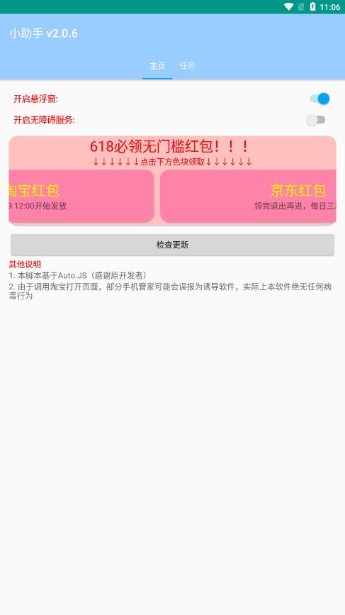 京东618全民拆快递脚本是一款专为2023年618购物节设计的智能任务辅助工具,能够帮助用户自动完成京东和淘宝平台上的各类活动任务,轻松参与现金红包瓜分活动。只需打开辅助脚本并开启悬浮窗功能,即可实现一键式操作,让繁琐的任务变得简单高效,为用户节省大量时间和精力。