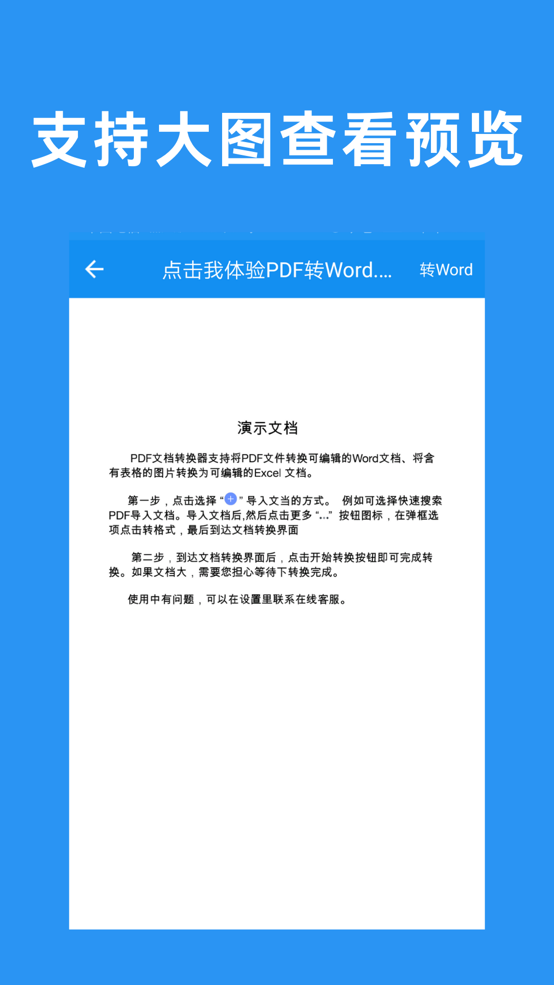 PDF转文档是一款功能强大的文档处理工具,专注于PDF格式的转换与编辑。它不仅支持PDF转Word、Excel等常见格式,还能满足用户对文件预览、批量处理等高级需求。界面简洁直观,操作流畅,无论是新手还是专业人士都能快速上手。无论是工作汇报、学习资料整理,还是合同文件处理,它都能提供高效便捷的解决方案。