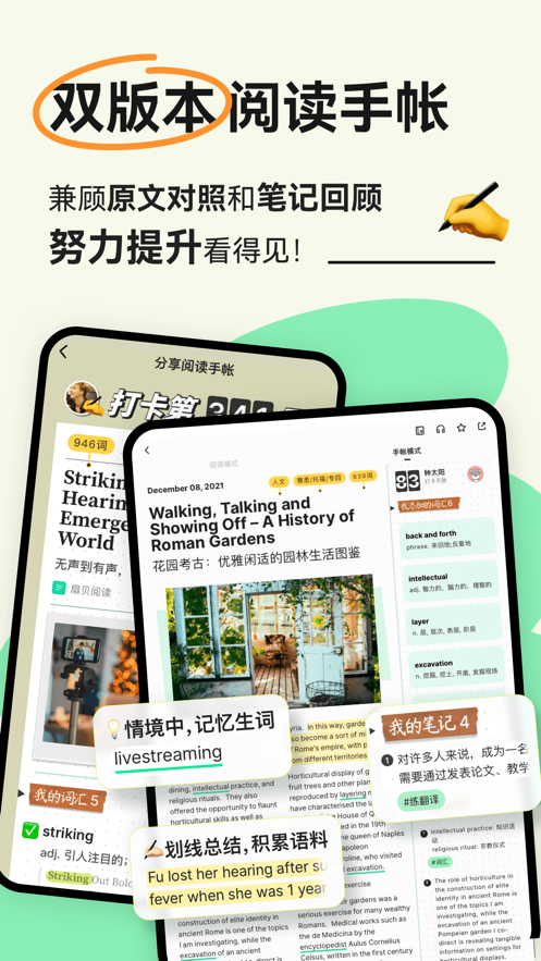 学习计划功能让阅读中的生词可以即时添加到个人学习计划中,配合扇贝强大的记忆系统进行科学复习,确保长期记忆效果。