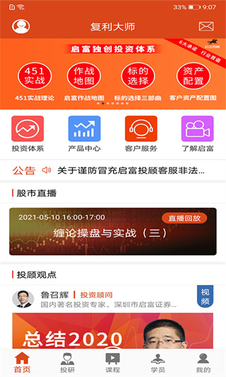 视频课程:精选投资教学视频,涵盖从入门到进阶的各类知识,用户还可通过直播与专家实时互动,解决个性化投资疑问。