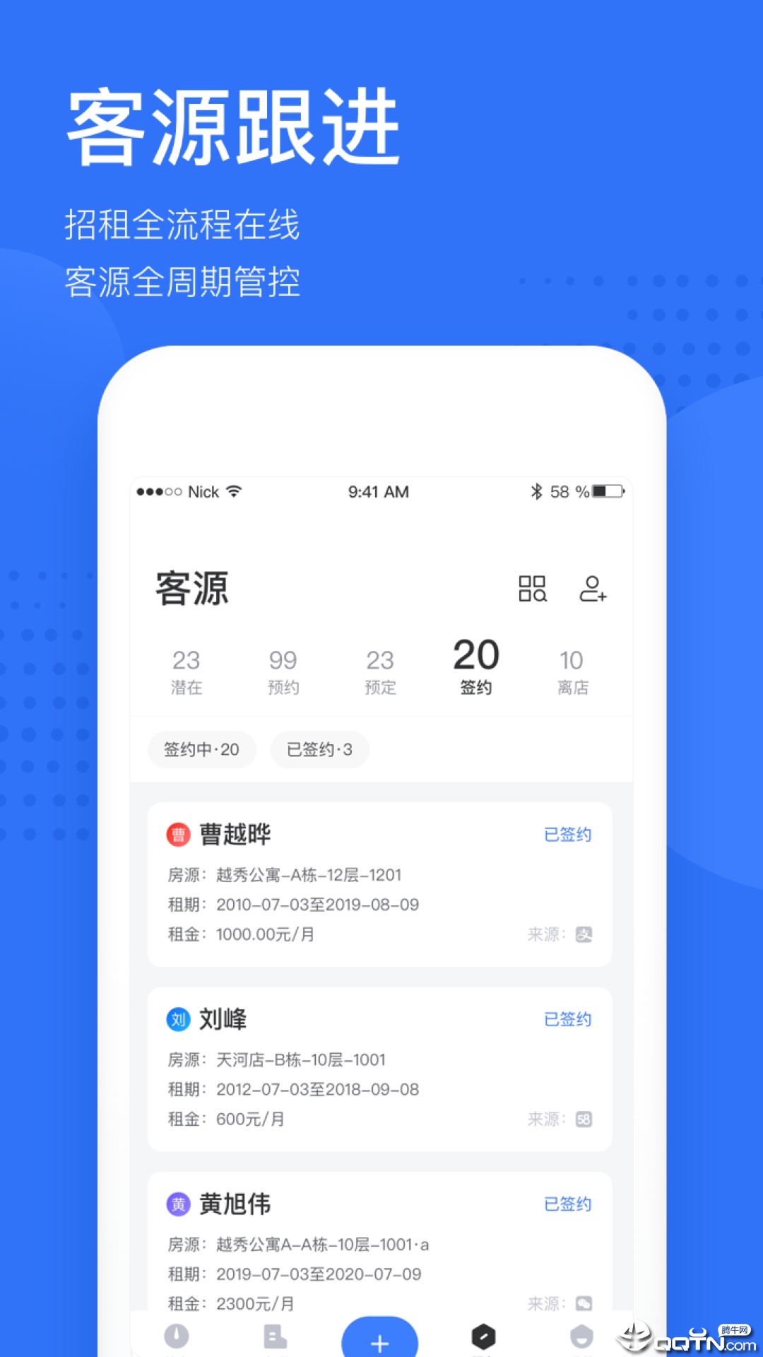 -支持待办提醒、客源跟进、掌上租控、预定签约、入住退房、移动验房、移动审批、财务管理等,随时随地连接租客,内置智能合同模板库,3分钟即可完成电子签约;