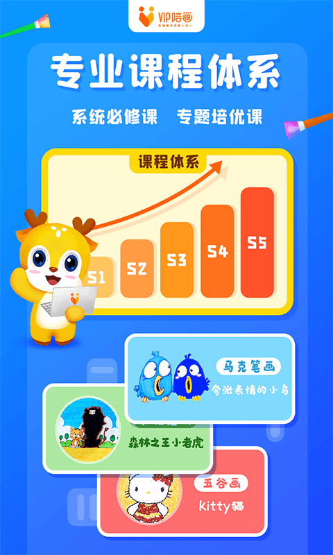 VIP陪画在线少儿美术是专注于3-18岁青少儿的在线美术教育平台,隶属于北京艺桥教育科技有限公司旗下互联网教育品牌。平台以"培养未来世界艺术小公民"为使命,采用"互联网+在线美术教育"的创新模式,融合大数据分析、人工智能等前沿科技,自主研发课程体系。平台不仅提供少儿美术基础教育,还开设了国画、油画、素描、速写、色彩、设计等多元化素质课程,通过系统化的教学帮助孩子全面提升艺术素养和创造力。课程体系严格遵循亚洲美术研发中心的五个核心素养标准,同时吸收21世纪核心素养及国际先进教育理念,充分考虑各年龄段孩子的认知发展特点,将专业美学、教育心理学与自然科学、社会科学等学科知识有机融合,打造出独具特色的综合艺术教育体系。