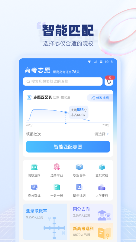 超多数据资源实时更新,院校和专业轻松筛选查看。数据库每日同步教育部最新招生政策,确保所有推荐方案都基于最新录取规则。院校信息包括历年分数线、招生计划、就业质量等关键指标。