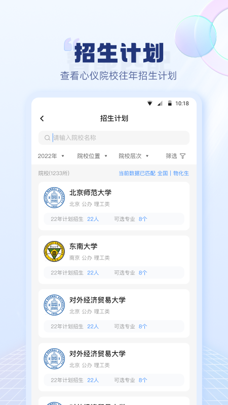 全国各大院校的详细信息随时查看,丰富资讯免费查看。除基础信息外,还提供校园风光、特色专业、知名校友等扩展内容,帮助考生全面了解目标院校。所有数据均来自官方渠道,确保真实可靠。