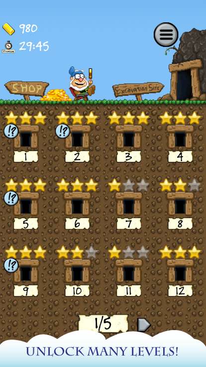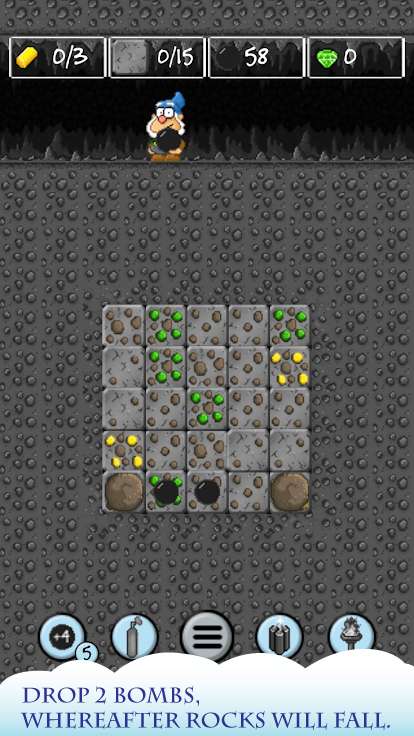 游戏讲述了一个有趣的故事:我们可爱的小矮人朋友遇到了经济危机!幸运的是,他发现了一张藏宝图,上面标记着世界各地珍贵的黄金和钻石。不过这位小矮人似乎有些过于热情了——为什么费劲挖掘宝藏呢?直接炸开不就好了吗?当然,事情没那么简单。每次爆炸都会引发连锁反应,石块可能会掉落,地形会改变,新的挑战也会随之而来。玩家需要帮助这位莽撞的小矮人,在确保安全的前提下,用最少的炸弹获取最多的宝藏。随着游戏深入,你会发现每个关卡都暗藏玄机,需要仔细观察和思考才能找到最佳解决方案。