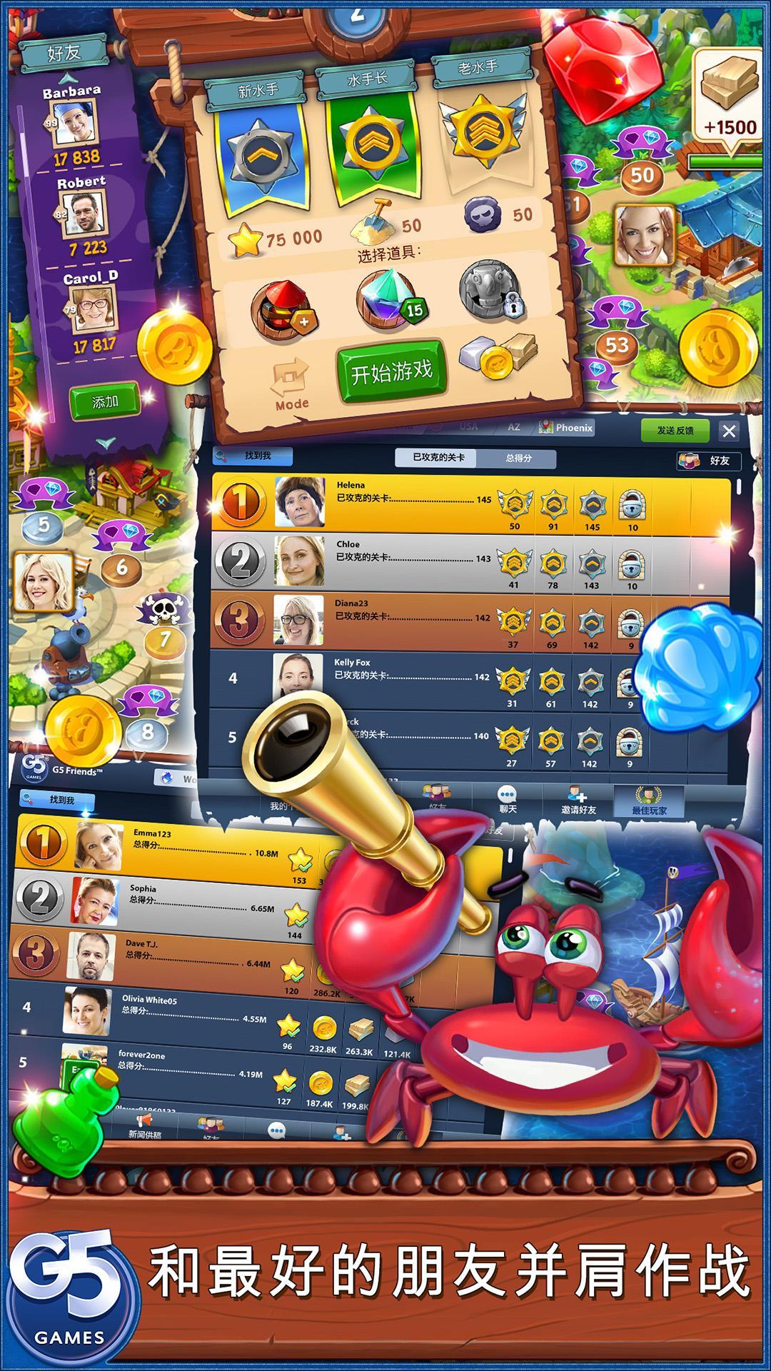 在超过10个惊心动魄的章节中征服数百个消除匹配物的关卡,每个章节都有独特的故事背景和挑战;借助起死回生的道具战胜一切困难,获取强化工具,这些道具将帮助你在关键时刻扭转战局;和最好的朋友一起闯关,看看谁能夺取最多战利品,游戏支持好友排行榜功能;建造船舰,开采金矿,打造最棒的水手团,通过收集资源来升级你的海盗团队;获取定期免费更新,尽享刺激好玩的新关卡、功能和更多精彩内容,开发团队会持续为游戏注入新鲜血液。