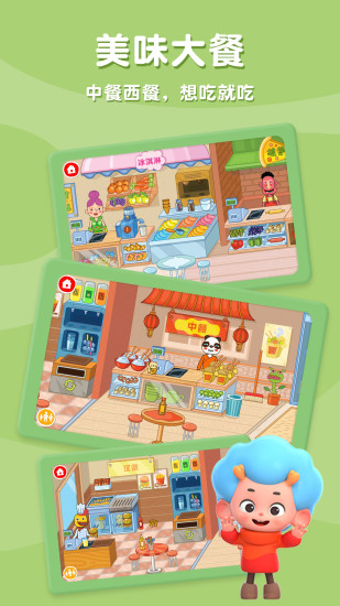 餐饮区是补充能量的好去处。小朋友可以带着心爱的角色去熊猫先生经营的中餐厅享用美食,也可以选择汉堡店、冰淇淋店或披萨店。游戏通过丰富的食物选择,潜移默化地教导小朋友营养均衡的重要性。