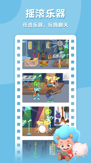 乐器店则是一个充满音乐魅力的地方。在这里,小朋友可以认识各种乐器,了解它们的特点和声音。通过为不同角色搭配乐器,还能组织一场别开生面的音乐会,培养音乐兴趣和团队协作意识。游戏特别设计了乐器分类环节,帮助小朋友锻炼逻辑思维能力。