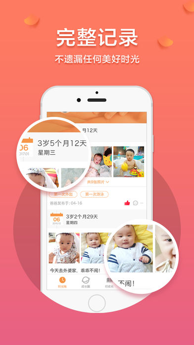 每个家长,都会慨叹,孩子飞快成长,曾经让你欣喜欢悦的重要时刻:出生、满月、会笑、蹒跚学步……却在记忆里模糊,在时光的飞逝中不知所踪。成长印记,与亲朋好友共同记录实时分享,让距离不再阻碍看得见的陪伴。系统支持多人同时在线编辑,爷爷奶奶、外公外婆都能参与记录,共同见证孩子的成长历程。