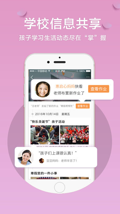 成长圈新增教师入驻,教师可在圈内发布和批改作业,方便家长了解孩子在校学习情况,实现家校无缝衔接;