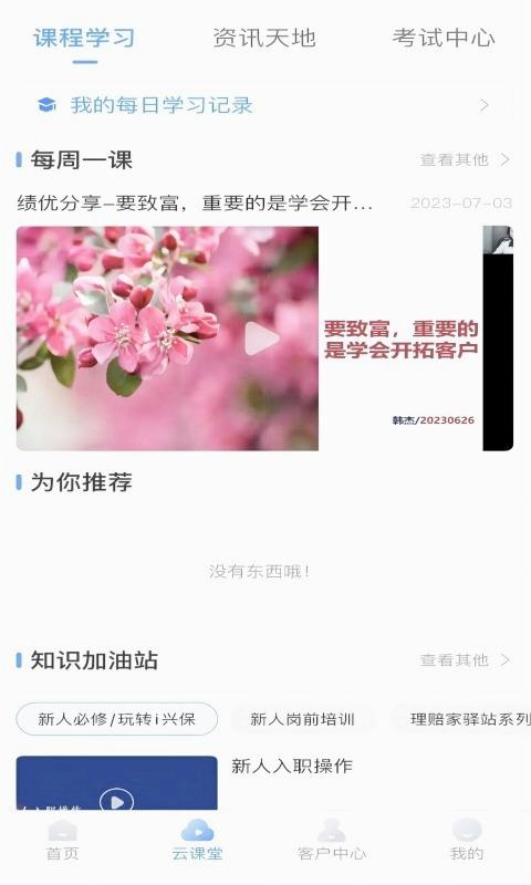 提供丰富课程,在线学知识。平台汇集行业专家精心打造的培训课程体系,包含产品解析、销售技巧、合规知识等多个维度,支持碎片化学习模式,帮助从业人员持续提升专业素养。