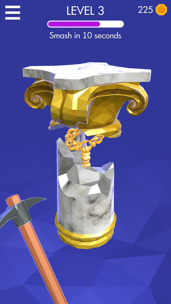 游戏不仅要求玩家拥有快速的操作手速,更需要精准把握粉碎时机,才能获得高分评价。随着关卡推进,场景中的可粉碎物体会越来越多,你需要合理切换不同武器来应对挑战。游戏设计了丰富的成就系统,完美粉碎所有目标还能获得额外奖励,这些奖励可以用来解锁更强大的武器,为你的粉碎之旅增添助力。