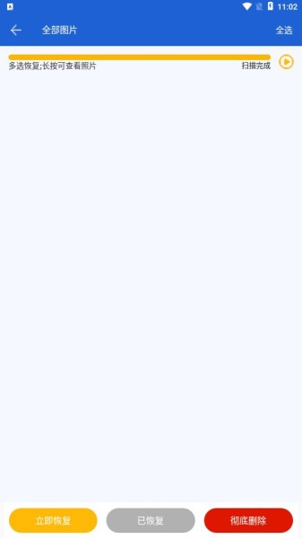 软件会立即扫描出所有微信图片,长按可查看照片信息,支持批量恢复操作:可选择单个或多个文件同时恢复