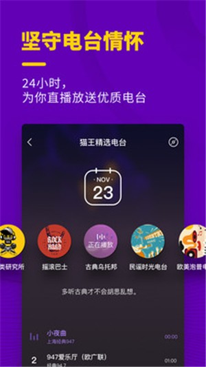 围绕用户全天生活场景,打造场景音乐平台板块,从晨练到夜读都有合适的音乐相伴。