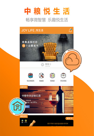 成都中粮悦生活移动服务平台是中粮地产成都公司基于全产业链思维打造的高端生活服务平台。平台整合了悦客会、住这里、御嶺湾生活馆、置业中心及中粮品牌展示五大核心功能板块,构建起"悦居家、悦乐享、悦置业"三大服务体系。其中,"悦居家"提供日常物业管理和生活服务;"悦乐享"聚焦社区文化活动和邻里互动;"悦置业"则为有需求的业主提供专业的房产咨询服务。这种360度全方位的服务模式,让每位中粮业主都能享受到高品质的社区生活体验,真正实现"乐彩悦生活"的美好愿景。