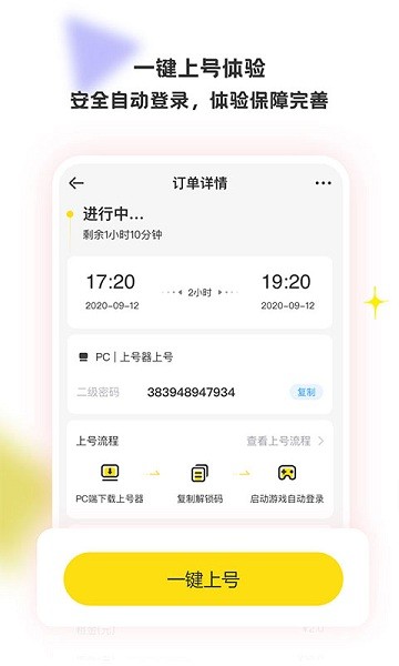 【安全上号】采用军工级加密技术,自主研发的智能登号器可实现一键自动登录,全程保护账号信息安全,杜绝盗号风险,让你租得放心、玩得安心。